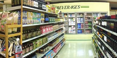 You will find a large selection of beer and wine in our beverage section and in the cooler.